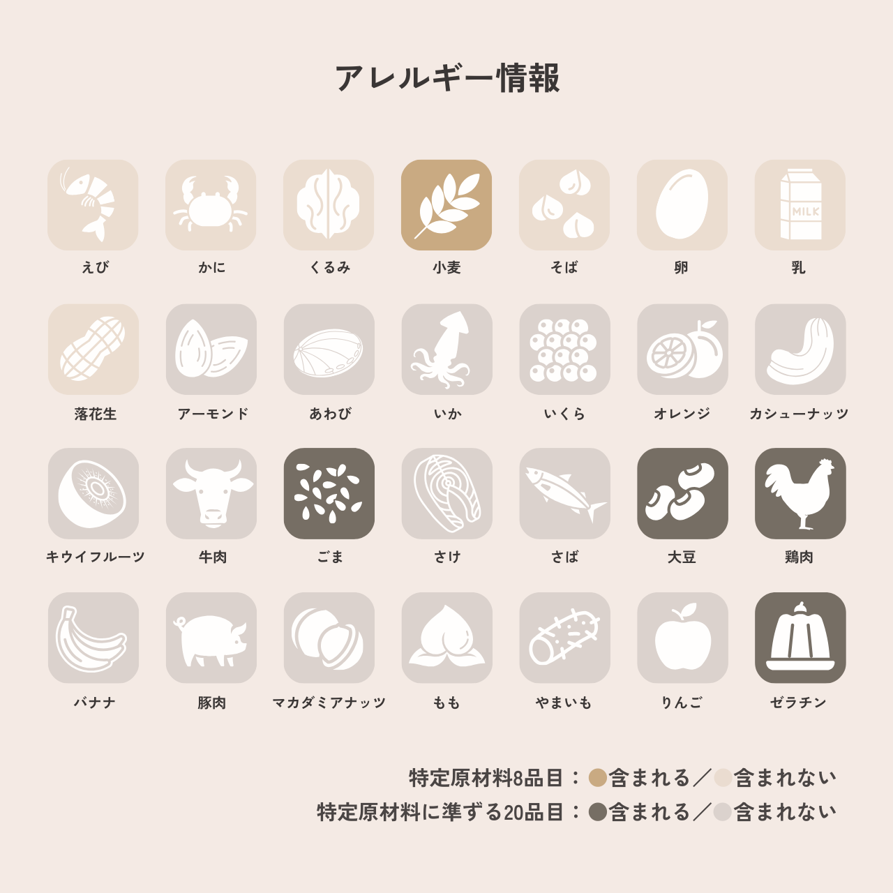特定原材料に準ずる20品目:●含まれる/●含まれない
